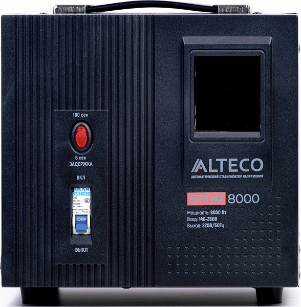 Автоматический cтабилизатор напряжения Alteco STDR 8000 (Альтеко СТДР 8000) предназначен для обеспечения стабильным напряжением подключенных к нему устройств. Широко используется в бытовых и промышленных сферах для защиты техники от аварийных скачков электроэнергии.